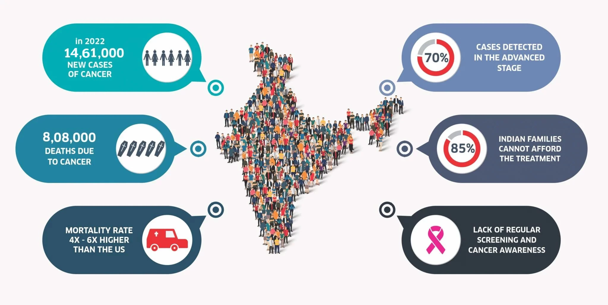Around 70% of cancer patients in India are diagnosed in advanced stages of the disease. As a result, the mortality rate for cancer in India is extremely high, estimated to be 6x higher than US and UK. The key to change this lies in better awareness and regular screening.
